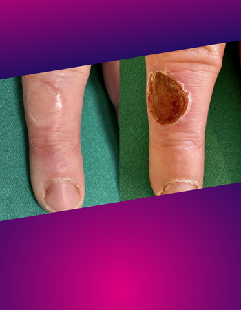 Wir berichten über eine 54-jährige Patientin, die primär zur Behandlung eines Granuloma anulare disseminatum in unsere dermatologische Klinik eingewiesen wurde. Nebenbefundlich berichtete die Patientin von Blasen und schmerzhaften Erosionen an den Fingern sowie vereinzelt an den Unterschenkeln, welche seit 3 Jahren rezidivierend auftreten würden.